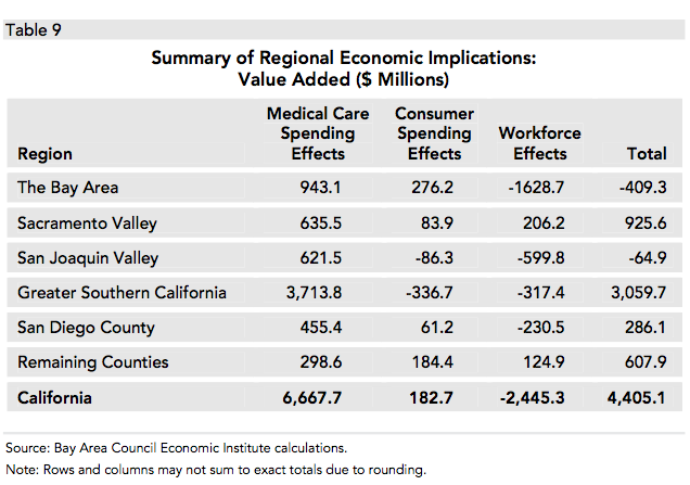 9 Hadley et al., 2008. Both figures are adjusted by 7.4% for inflation between 2008 and 2010; all figures in the report are in 2010 dollars since the analysis compares what the equilibrium state would have been in California had the ACA been fully implemented on the date when it was passed.
